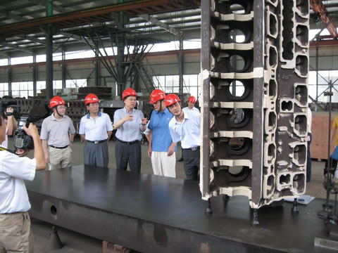 圖為陳敏爾常務(wù)副省長在集團董事長朱金根、副總方毅和杭機鑄造總經(jīng)理鄭金濤陪同下參觀鑄件成品車間現(xiàn)場。