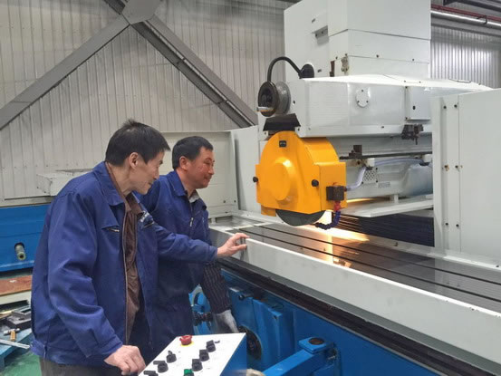 操作工和檢驗員正在驗收出口機床M7150*16/HZ