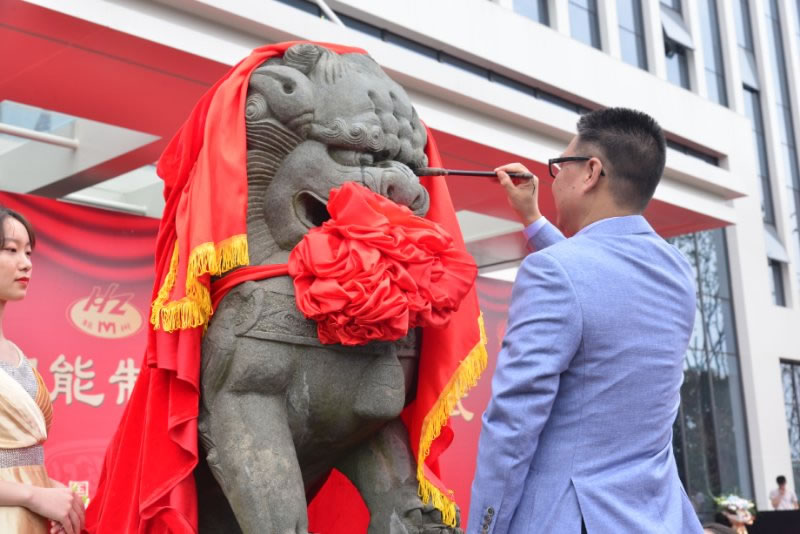 浦江縣人民政府副縣長(zhǎng)樓新有和杭機(jī)股份董事長(zhǎng)進(jìn)行瑞獸開眼儀式