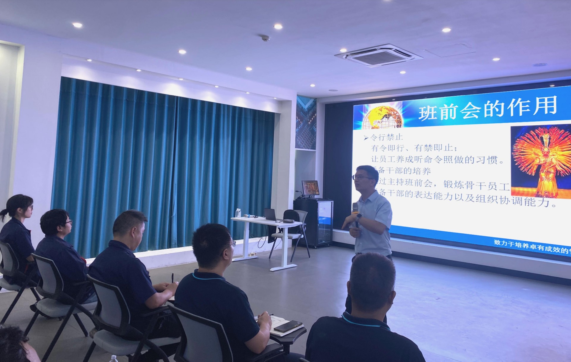 同時(shí),專業(yè)培訓(xùn)老師還對(duì)車(chē)間、班組進(jìn)行了班前會(huì)的導(dǎo)入訓(xùn)練,以短時(shí)有效高質(zhì)的形式,幫助團(tuán)隊(duì)快速進(jìn)入工作狀態(tài),提高工作效率和團(tuán)隊(duì)協(xié)作能力。各干部及各車(chē)間主管在培訓(xùn)后迅速落實(shí)相應(yīng)工作,通過(guò)班前會(huì)總結(jié)前期工作進(jìn)度,部署后續(xù)工作,提出改進(jìn)措施,以此提高職工士氣,傳達(dá)企業(yè)精神,從而強(qiáng)化團(tuán)隊(duì)凝聚力。